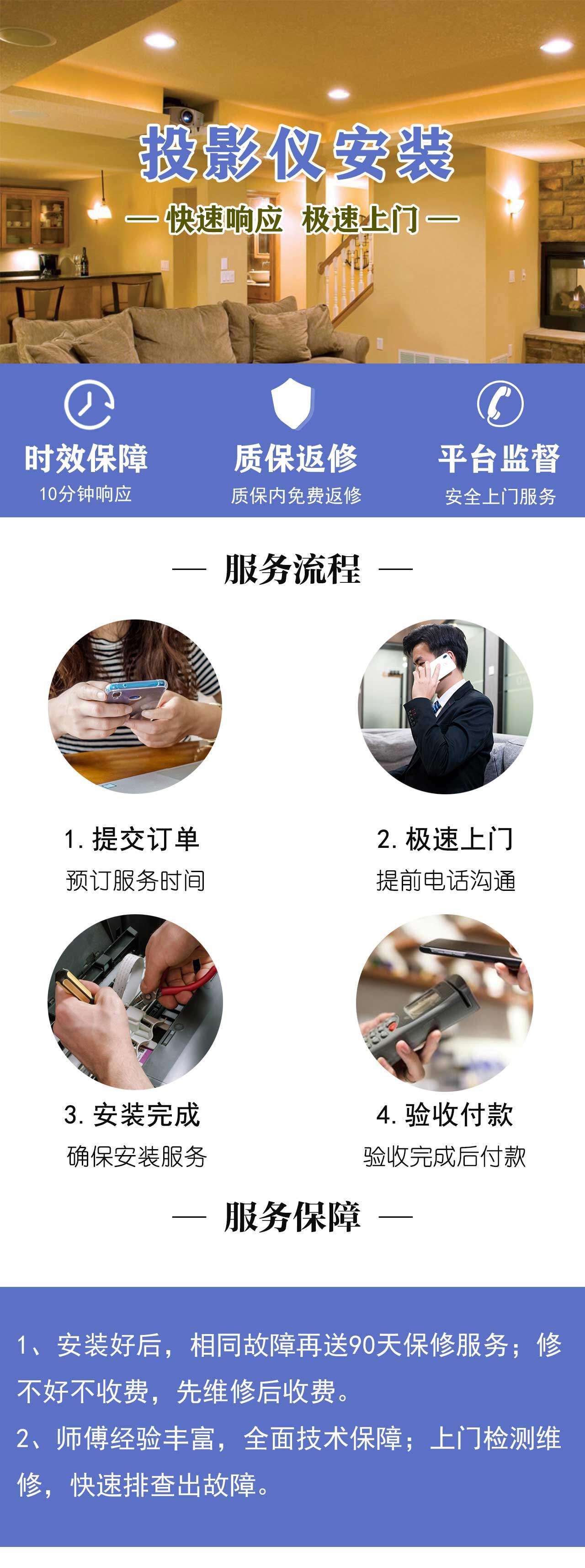 服务靠谱,从网上买的投影仪和幕布,本来包安装的,结果师傅一直没能过来,就叫了这家师傅,上门速度很快,一个多小时就装好了,干净利索